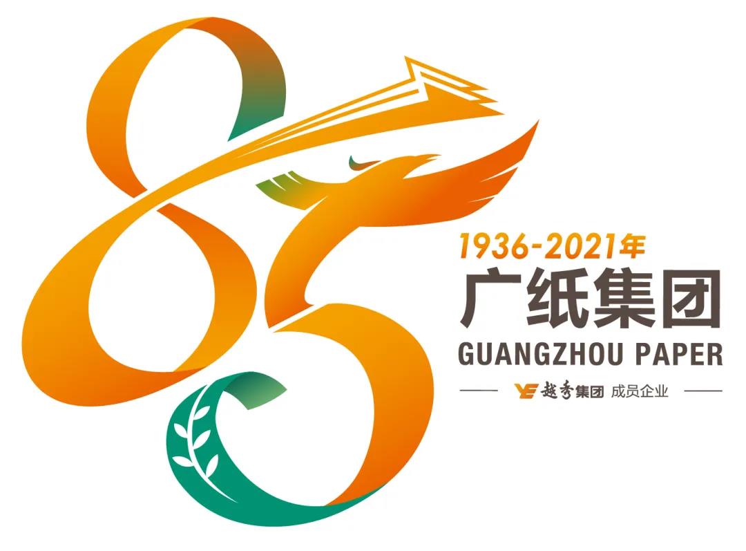 数字5:上半部分是腾飞的凤凰,象征企业把握市场机遇创新发展;下半部分是一幅卷轴慢慢展开的形态,寓意广纸85周年正掀开历史的新篇章,卷轴外延的五片树叶,代表着广纸集团五个历史时期和造纸主业,及一直坚持的环保态度。