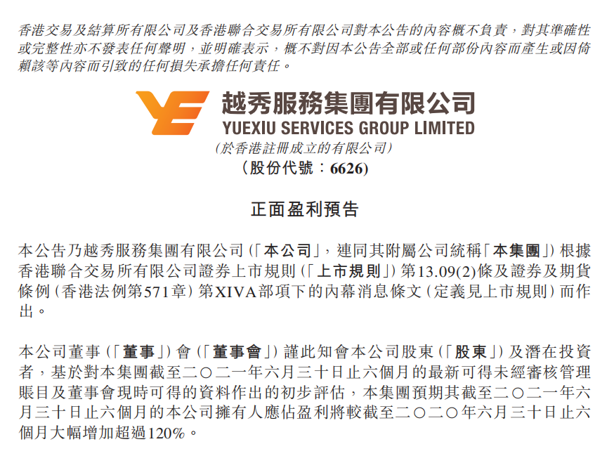 7月15日,星空电竞服务集团有限公司(6626.HK)发布盈利预喜公告。公告称经过初步评估,集团预期截至2021年6月30日为止的六个月,公司拥有人应占盈利将同比大幅增加超过120%。